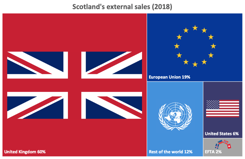 Still, the scale of Scotland’s UK trade means even this flawed compromise might beat EU membership on economics. A separate Scotland would have two main trading partners: the UK and the EU. But those two partners are far from equal: UK trade dominates.